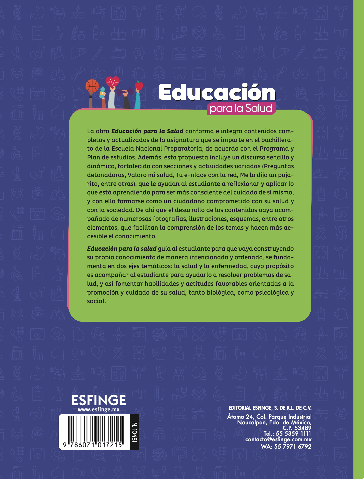 El libro Educación para la salud cubre el programa correspondiente a esta asignatura en el 5º año de la Escuela Nacional Preparatoria, UNAM.
