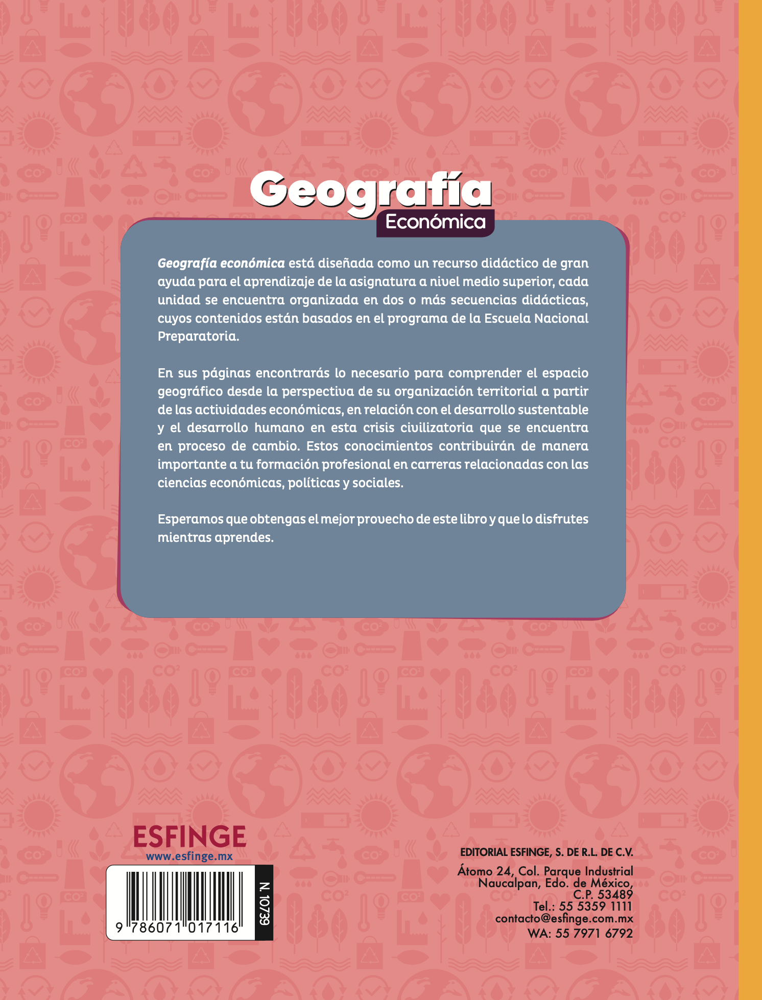 El libro Geografía Económica cubre el programa correspondiente a esta asignatura en el 6º año de la Escuela Nacional Preparatoria, UNAM.