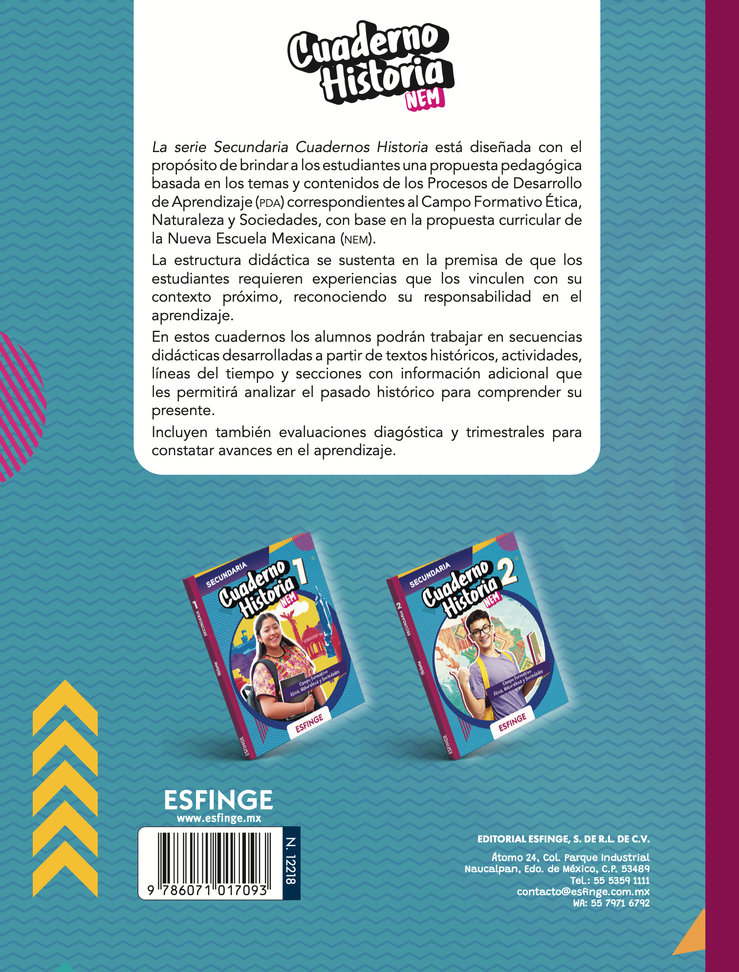 - Cuaderno correspondiente a Historia en secundaria, a partir de las PDA del Campo Formativo Ética, Naturaleza y Sociedades de la Nueva Escuela Mexicana.